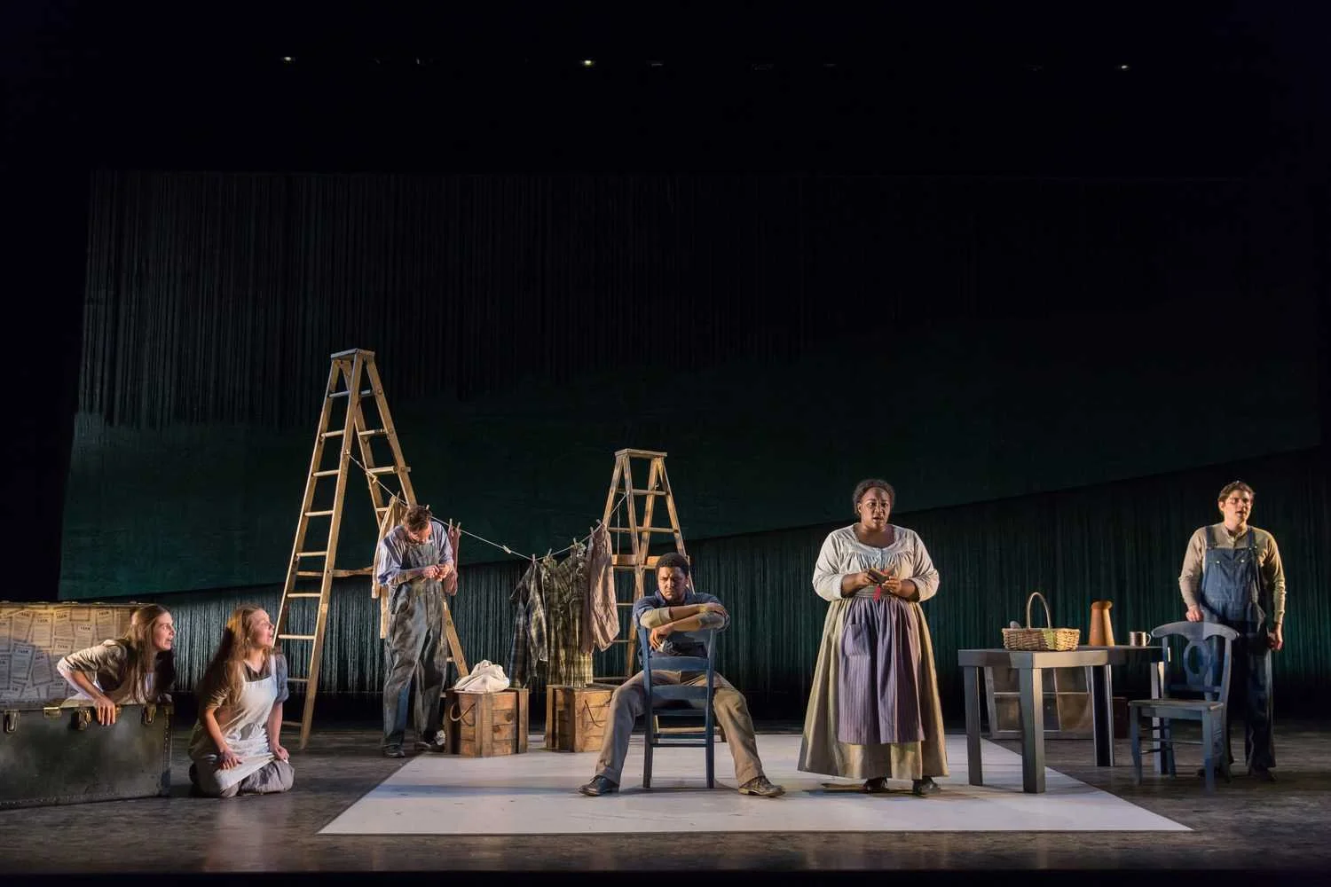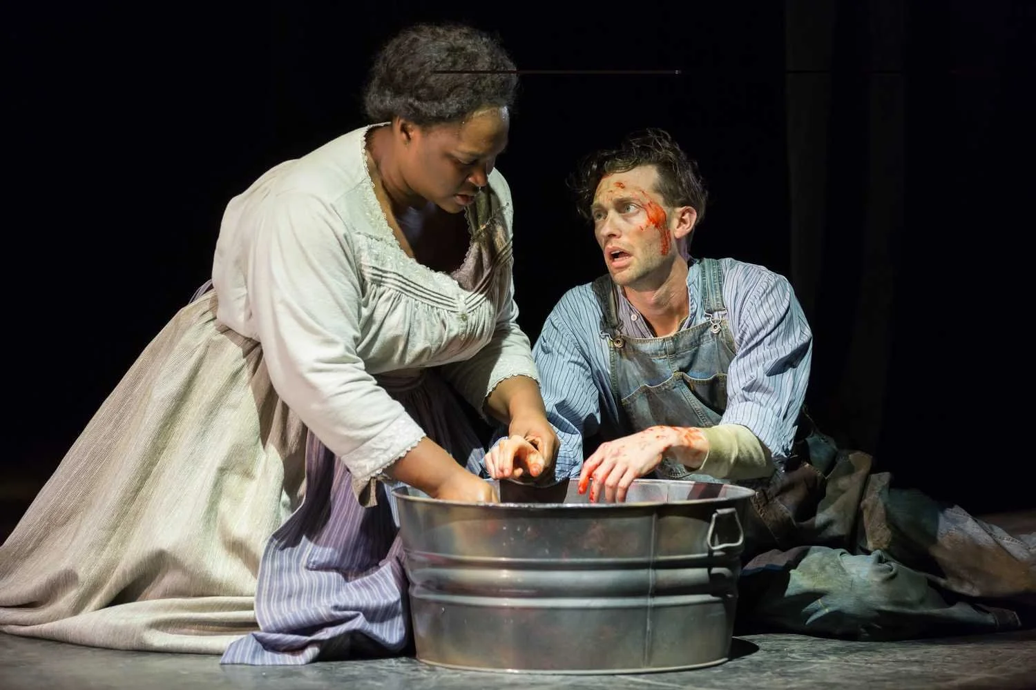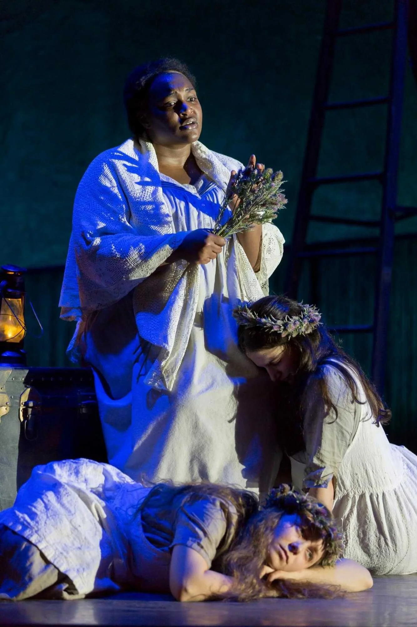“Bass Timothy J. Bruno used his dark-hued voice and hulking frame, in a dust-covered, tattered costume (part of the effective design of Lynly Saunders), to sow terror from the moment he first lurched silently across the stage.”